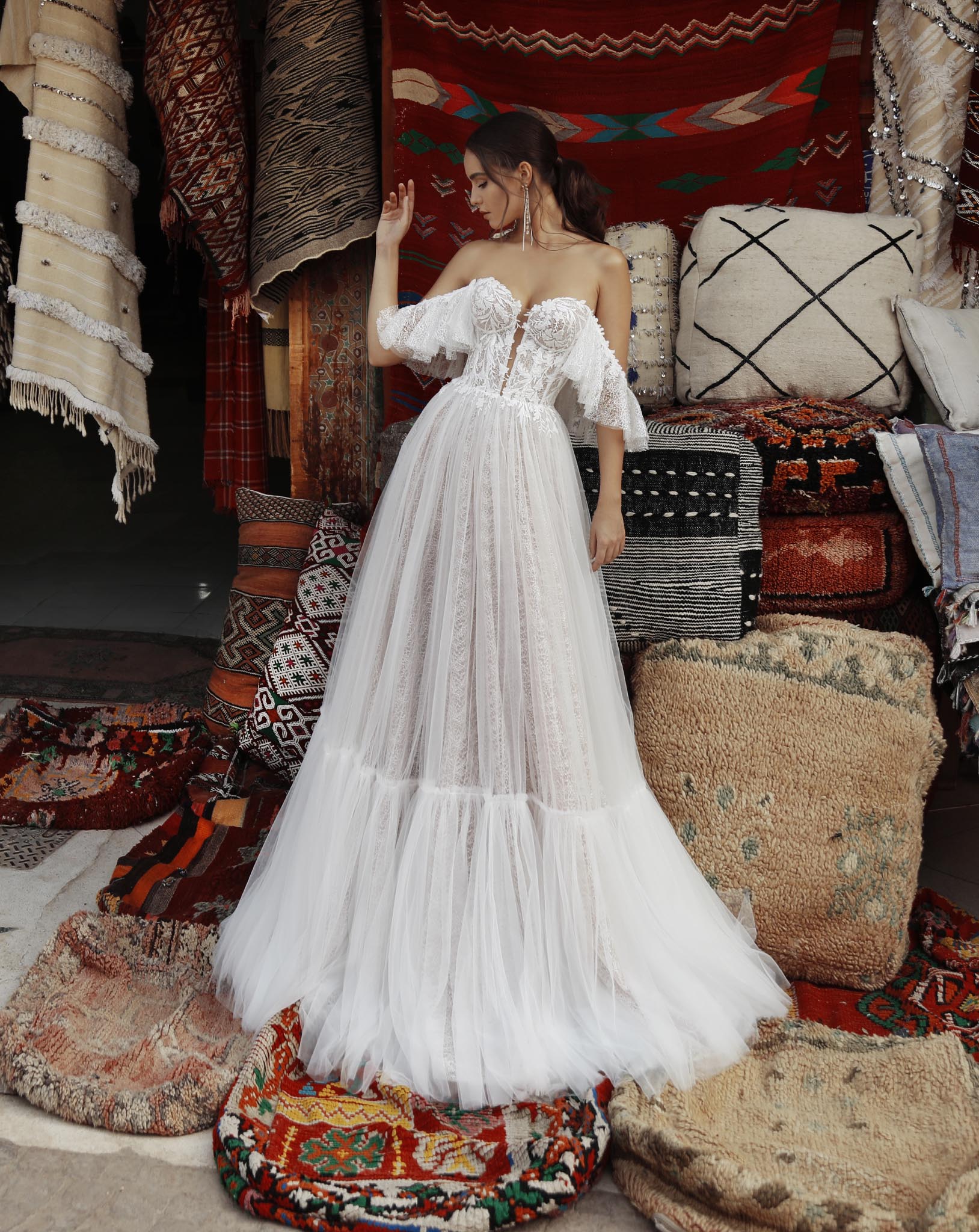 Die Designerin Ida Torez entwirft leichte und verspielte Kleider mal mit Spitze, mal mit Glitzer und vielen Details. So entstehen wunderschöne Kleider für die verspielte Braut.
